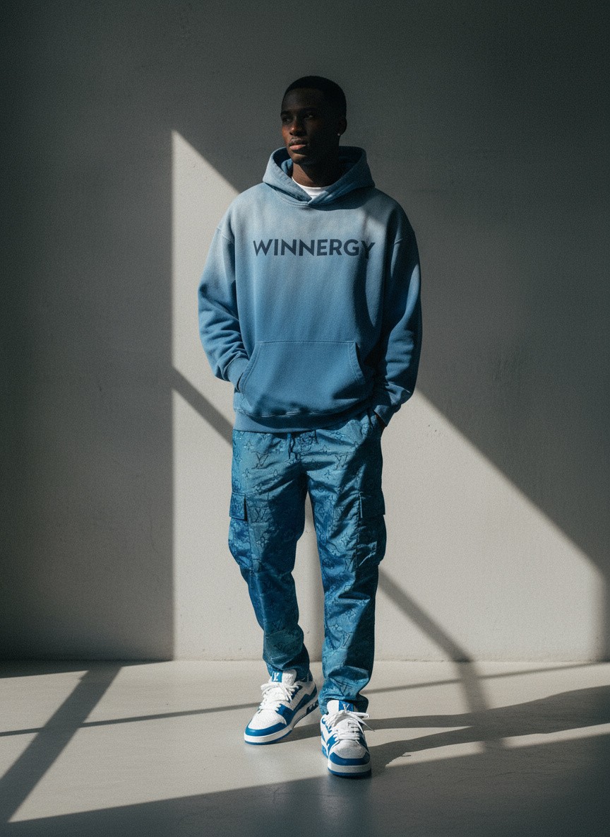 Stand out in the Winnergy Gradient Hoodie, a fresh take on everyday comfort with bold style. This premium hoodie features a smooth cotton-blend build with a brushed fleece interior for warmth and softness. The sky-to-ocean blue gradient finish creates a dynamic streetwear look, while the bold WINNERGY logo across the chest adds signature identity. A kangaroo pocket, adjustable hood, and ribbed trims complete the design, making it a versatile essential for layering or wearing solo.